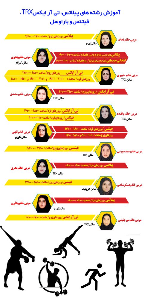 آموزش رشته های پیلاتس/TRX/فیتنس/بازی و ورزش کودکان/باراوسل