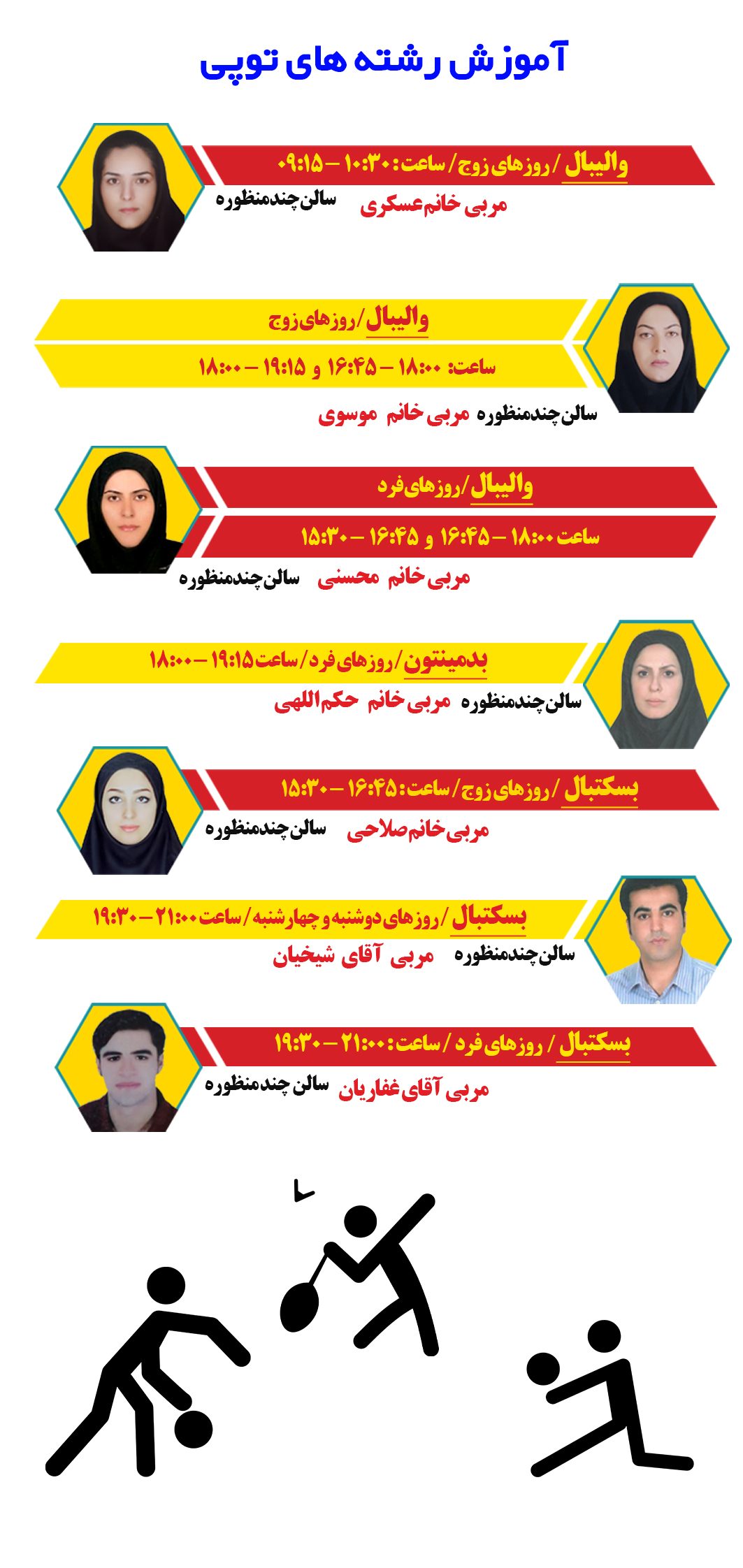 ساعات آموزش کلاس های ورزشی توپی